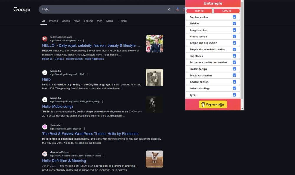 Simplify the Google search result and remove unnecessary garbage